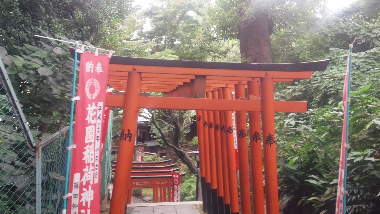 上野精養軒のそばにあります。 五條天神社と一緒の入り口になっています。五條天神社は健康祈願、花園稲荷神社は縁結びのご利益だそうです。入り口から朱色の鳥居が並んでお稲荷さんにお参りする雰囲気を盛り上げます。そんなに大きなお稲荷さんではないのですが、美術館デートのあとなどに寄ってみてもいいかも。