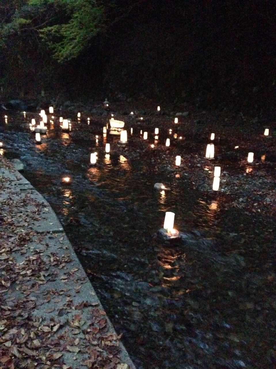 やはり綺麗で幻想的な一言です。紅葉と灯篭がマッチしていて特に川に設置されている灯篭は良かったです。
