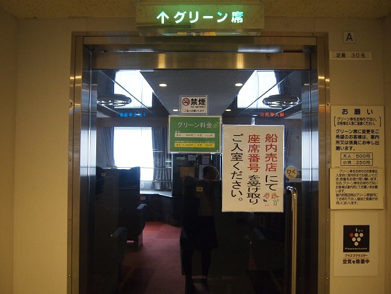 グリーン席は船内一番前にあり、静かで良いのですが大変揺れました。