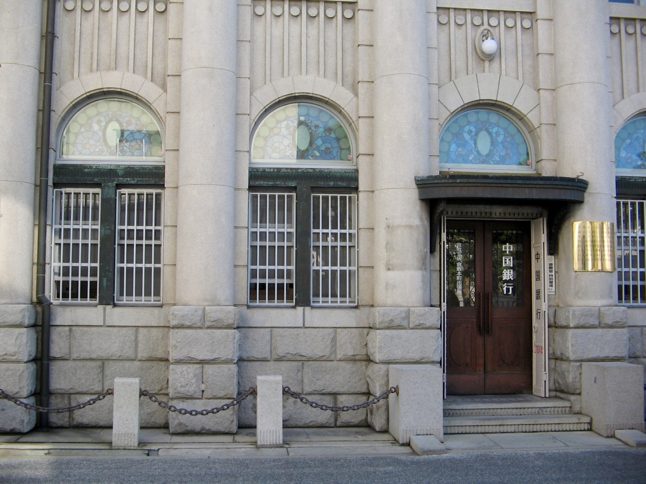 美観地区の裏通り本通り商店街の中ほどに中国銀行倉敷本町出張所はあります。大正時代にたてられたという古い建物なのですがれっきとした現役の銀行なのです。何だかほっとする佇まいのレトロな銀行です。