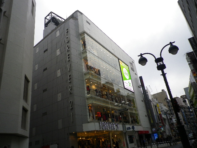 フォーエバー21。意味はそのまんまなのだろうか。渋谷駅から5分ほどの場所にドーンとそびえたっている。駅前のデパートは空いていて、こういったファッションビルに若者が群がるのは時代の流れなのか。若者向け。