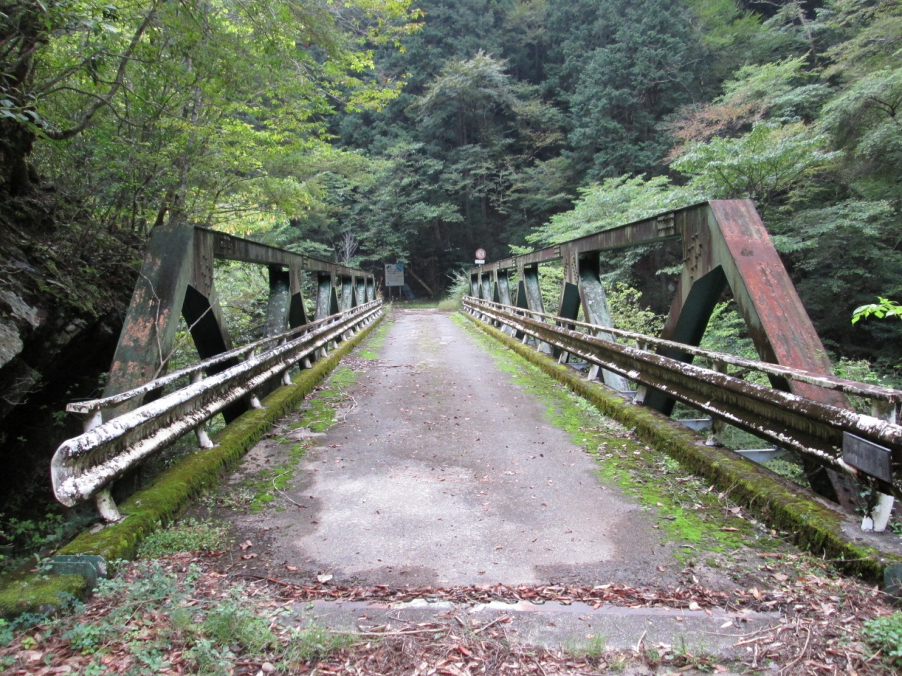 東栄町の林道入り口から「第2トンネル」を抜け、しばらく歩くと名も無き「鉄橋」が出現。昭和67年(だったと思います)竣工と書かれてありました。錆付いた「鉄橋」の上からは、大入渓谷が見渡せます。深い山に抱かれた渓谷、眼下に広がるエマラルドグリーンの淵・・・いい眺めを堪能できますよ!!