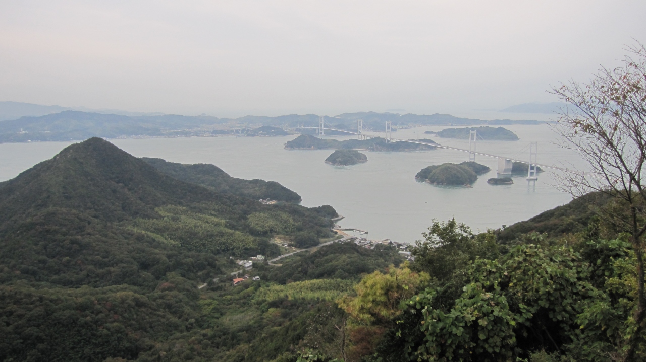 しまなみ海道ドライブ、眺望のよいところを求めて二か所目にここ、亀老山展望公園に来てみました。美術館の庭を思わせるようなのようなおしゃれな建築で、あらゆる角度の