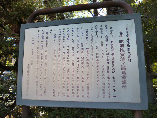 「肥前佐賀藩主鍋島家墓所」の案内板は鐘楼の脇に設置されています。