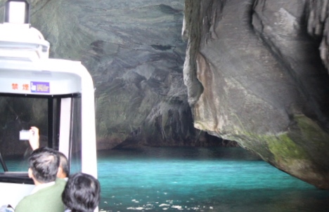 堂ヶ島は紺碧の海に美しい海岸線が続き、小さな島々が点在する景勝地です。堂ヶ島洞くつ巡りコース(約20分)に乗船しましたが、海から眺める景色も素晴らしく特に天窓洞の天井穴から差し込む太陽の光が幻想的です。