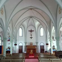 福江島の北側、384号線から少し入った丘の上に真っ白な水ノ浦教会はあります。