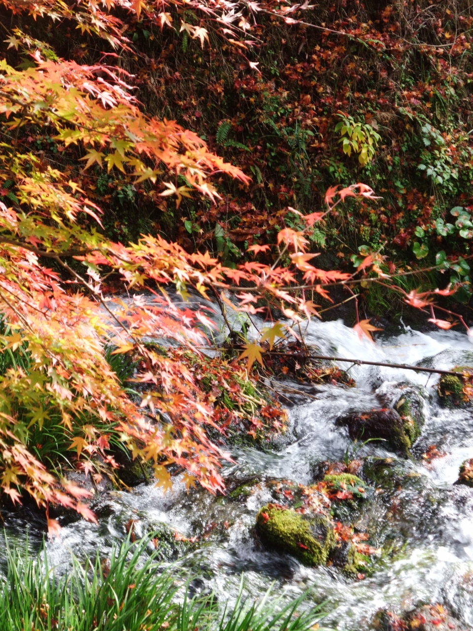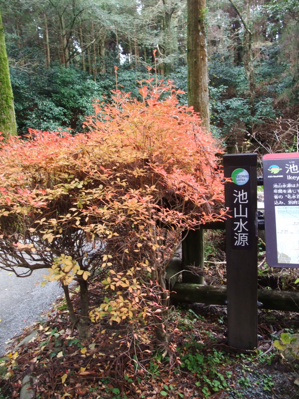 11月に訪れる時は、池山水源はいつも秋色に染まっており、実に美しいです。何度訪れても飽きることはありません。落ち葉と清流のおりなす秋の池山水源最高です。