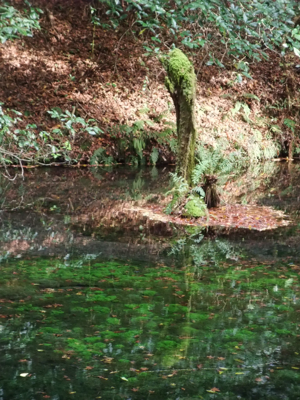 池山水源は毎分30トンという豊かな湧水を誇っていおり、水温は年間を通して13.5度だそうです。水源の池は、樹齢200年以上といわれる杉などの巨木に囲まれており、きわめて透明度が高くここに光が差し込んだときは本当にきれいです。