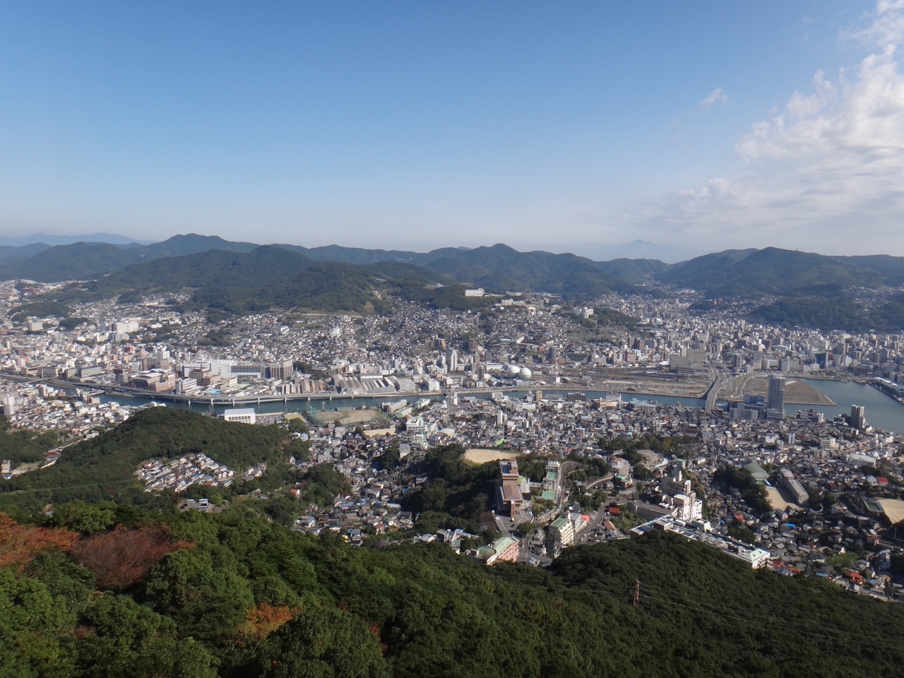山に囲まれた町は上から眺めるととても町の造りがわかりやすく、遠くは雲仙や軍艦島も見え、とても良い景色でした。