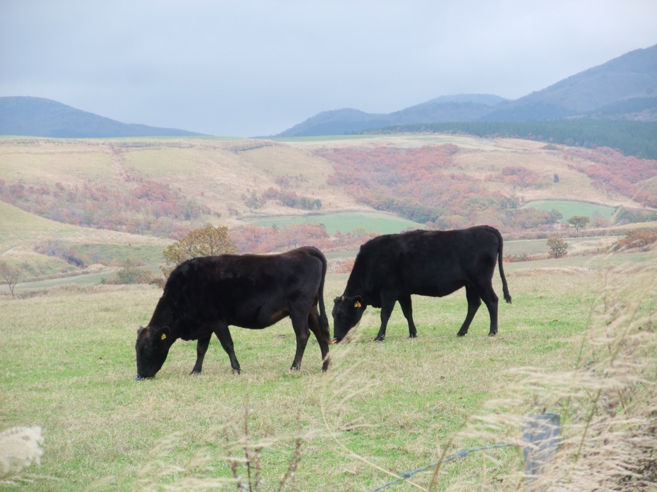 瀬の本高原は、阿蘇の外輪山と九重連山のあいだに位置する高原で、広々とした草原です。標高は850~900m 位で、ここからの展望は素晴らしく、南に阿蘇五岳、北に 九重連山を望めます。