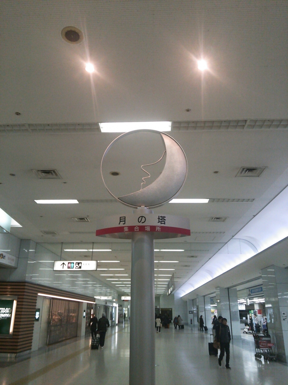 前回羽田空港に来たときに、太陽の塔をリポートしたので、今回は月の塔を。広い地下一階のフロアに設置されており、土曜の朝早くに訪れましたが、利用者はいない様子。携帯電話が普及した今、存在意義はどこにあるのかは謎。表情がないので、待ち合わせ場所以上でも以下でもないと思われる。