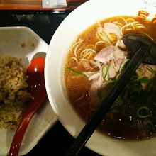 豚まんなど点心系が有名な有名ですが、ランチタイムということで醤油ラーメン&ミニチャーハンのセットを頼みました。