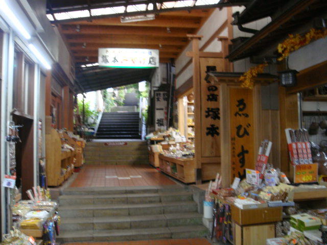 こま参道は大山バス停付近からケーブルカー追分駅まで続く参道で、両脇には大山名物の豆腐料理店、大山こまのお土産物店、旅館などが立ち並んでいます。階段が多くしんどいですが、その階段には何か所にクイズが書かれており、質問、答えの順に登って行きます。階段を登るの時飽きないようにひと工夫しています。
