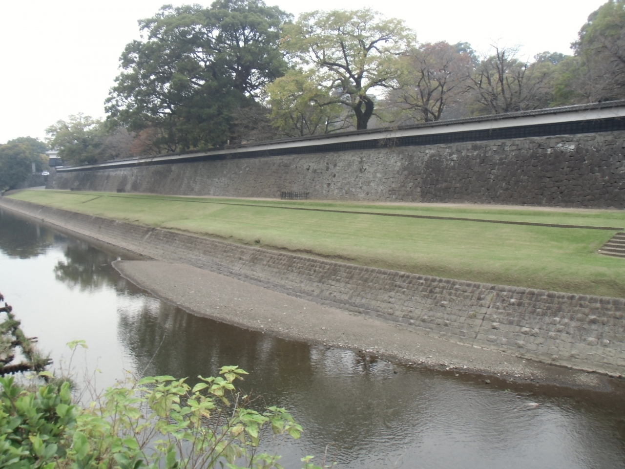 熊本城の東の平御櫓から西の馬具櫓まで約242mの塀が続いています。現存する城郭の塀の中では最長を誇るそうです。うまや橋から眺めると、塀の端が見えないぐらい長いです。白漆喰に黒の下見板を張り桟瓦が乗っています。