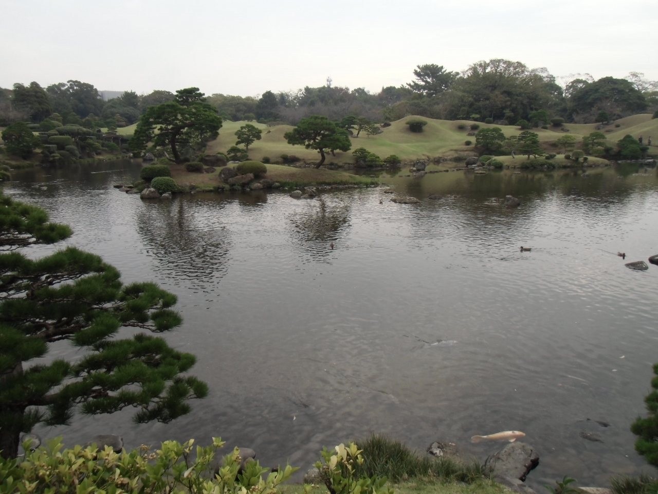 東海道五十三次を模したといわれる趣ある庭園です。一番驚いたことは、庭園にある池やその近くを流れる川の水が透明で、鯉がたくさん泳いでいたことです。造られた庭園の美しさと、自然の水の美しさが一度に味わえる場所です。入場料は大人400円でした。