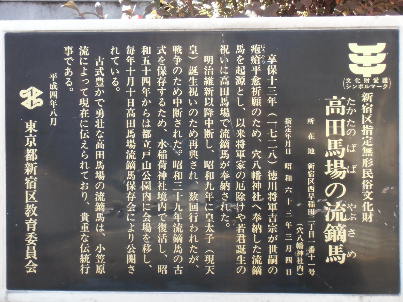 東京メトロの早稲田駅から徒歩3分ぐらいのところにあります。山裾を切り開いていると横穴が見つかり、中から金銅の御神像が現れたことから「穴八幡宮」と称するようになったそうです。厄除け祈願として流鏑馬奉納がされていた神社です。