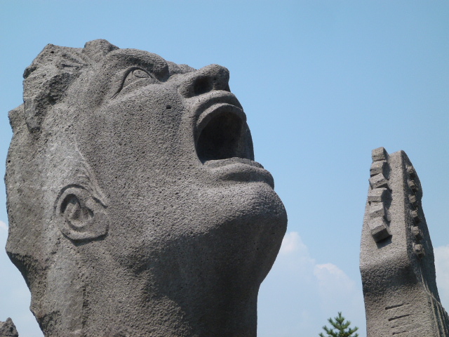 鹿児島市内でレンタカーを借り、桜島へフェリーで渡り、桜島一周のドライブです。好天気に恵まれ快適でした。「赤水展望広場 叫びの肖像」にやってきました。長淵剛がここ鹿児島の出身で、コンサートを桜島でやる事は知っていましたが、ここだったんですね。迫力ある像が建っています。現在は広場となっていて鹿児島湾が身近に見れます。拡張するのでしょうか、工事車両が入っていましたね。休憩とした立寄ってはいかがでしょうか。