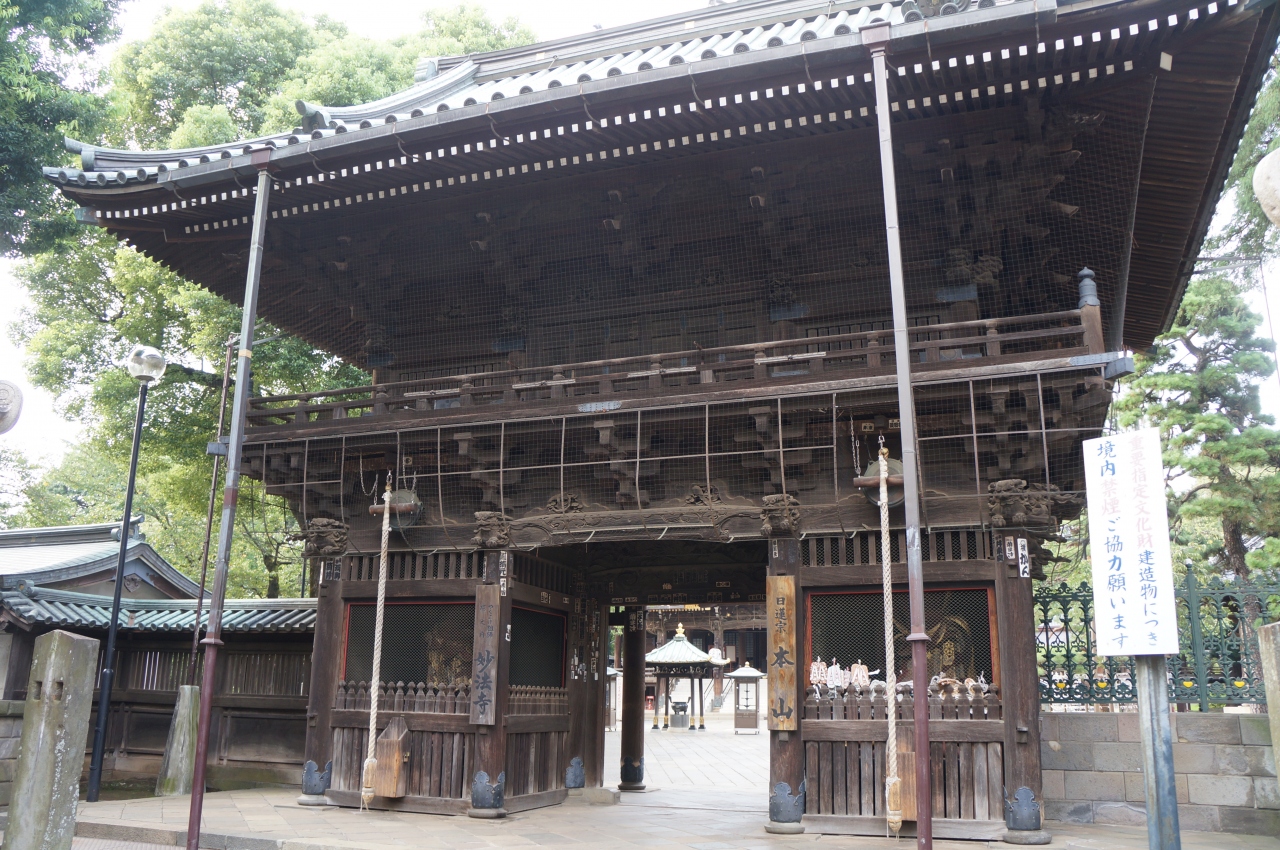 徳川家綱が寄進したとされる金剛力士像が安置されている仁王門、明治初期の和様折衷様式の鉄門、日蓮聖人像(やくよけ祖師)を祀る祖師堂など荘重な伽藍が並びます。