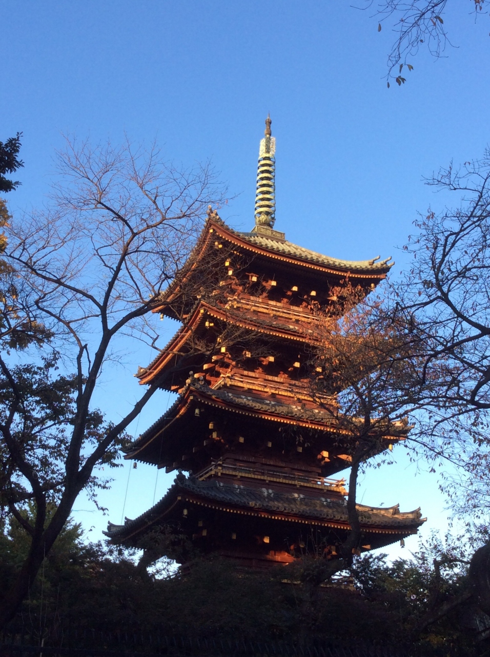 上野東照宮の方が西側にあるため、夕日に照らされた塔がとてもきれいに見えました。