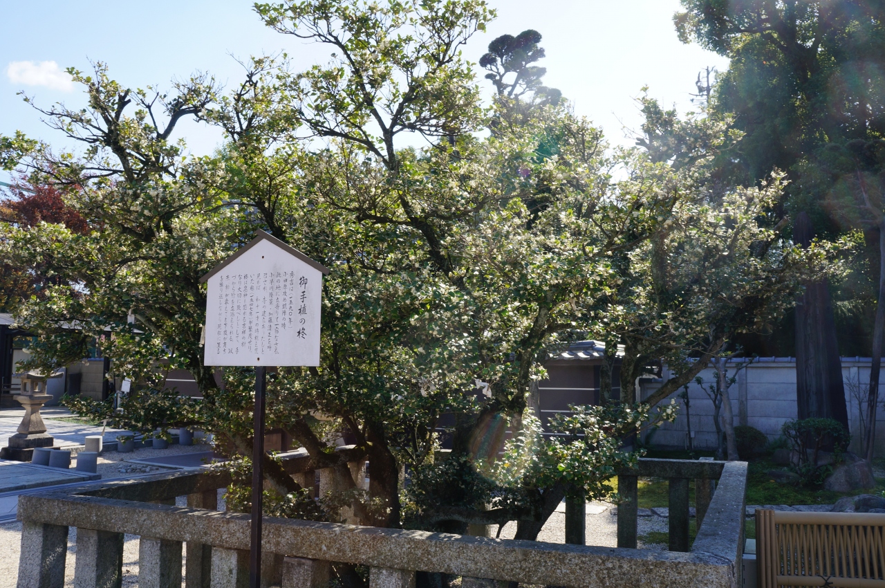 境内はさほど広くありませんが、秀吉誕生のときに使用されたと伝わる産湯の井戸や秀吉が11歳の時に植えておいた「御手植えの柊」などが見れます。