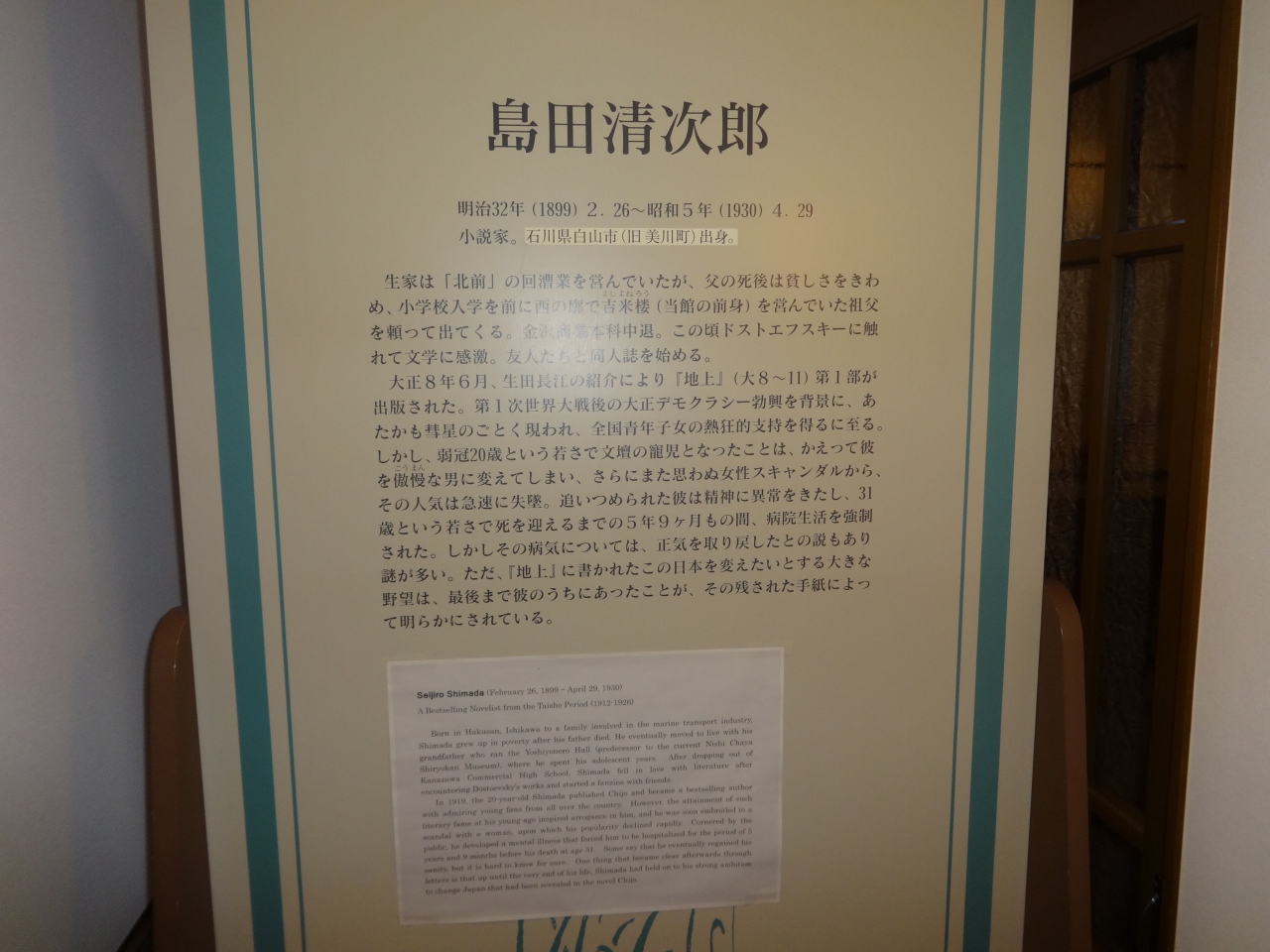 西茶屋資料館との名称ですが、茶屋には関係のない金沢出身の作家・島田清次郎に関する展示が主でした。