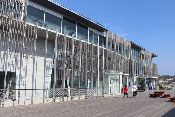 道の駅開国下田みなとは下田港に面し、遊覧船黒船サスケハナの乗船場の近くにあります。伊豆急下田駅からも徒歩15分程度です。下田市観光協会が併設されており、旅の情報を仕入れるのに便利です。またとても広い開放的なウッドデッキがあります。