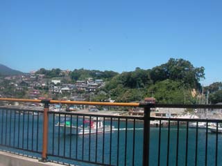 魚市場のバス停で降りて、向かい側にある魚市場の2階にある真鶴町営の魚座でお昼にします。店内に入ると海に面して大きな窓があり明るい雰囲気で、お昼前なのでまだ空いていて海が見える窓側にテーブルに着きます。