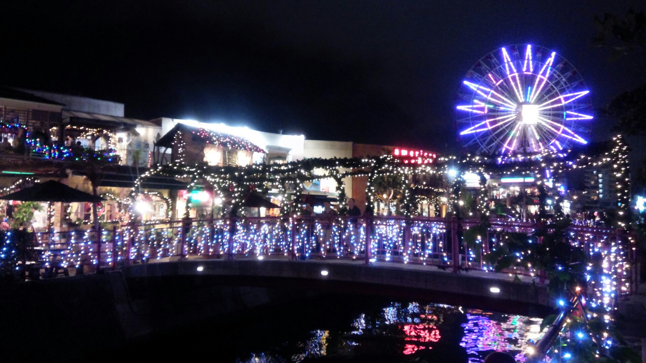 ヒルトン北谷に泊まって夜に行きました。クリスマスが近づいてきたので、イルミネーションがきれいでした。夜は買い物をするというよりもアメリカンな雰囲気を楽しむ感じでした。米軍基地が近いせいか外人さんがいっぱいいましたし、アメリカンな音楽を外人さんがブースで流していたりしました。
