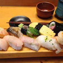 カウンターで流れ作業で寿司を握っていて最後のネタを握る職人のところで7皿くらいしばらく留まっているのでイライラしました。食べるとマグロは最高に美味しかったです、このマグロの美味しさで”リぴなし”と思っていた気持ちが吹っ飛びました。いわし、エビのお握りも美味しいです。店内はオシャレなお寿司屋さんでした。