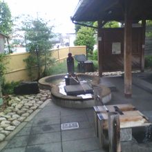 電車を待つ間、あるいは電車で到着した方のために駅舎の前に足湯が設けられています。松江を訪れた際には旅の疲れを足元から少しだけでも癒すことができるスポットです。