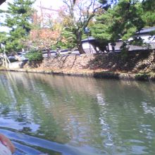 塩見縄手の塩見は松江藩の家老にまで出世した侍の苗字に由来するとのことです。徒歩やバスからではなく堀を巡る船から眺めると、遠景となるためかまた違った趣を感じることができるほか、堀にまで伸びた松の幹を間近に見ることができるため、昔からの松と街並み、今を行きかう人々が混じり合った風景に思いが交錯します。