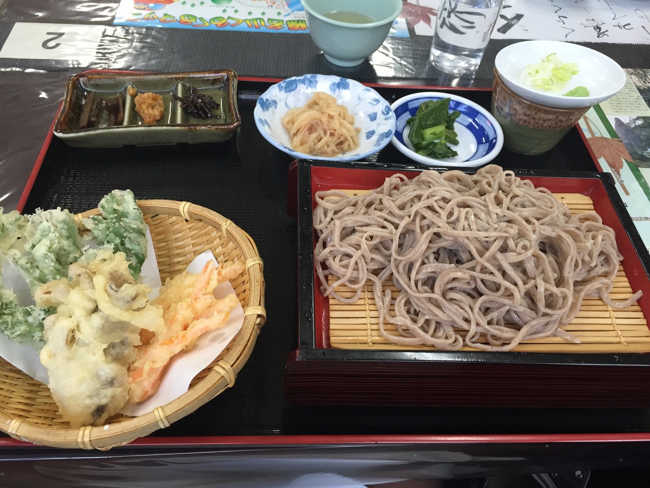 おそば、天ぷら、切り干し大根、小鉢、お漬物がついていました!