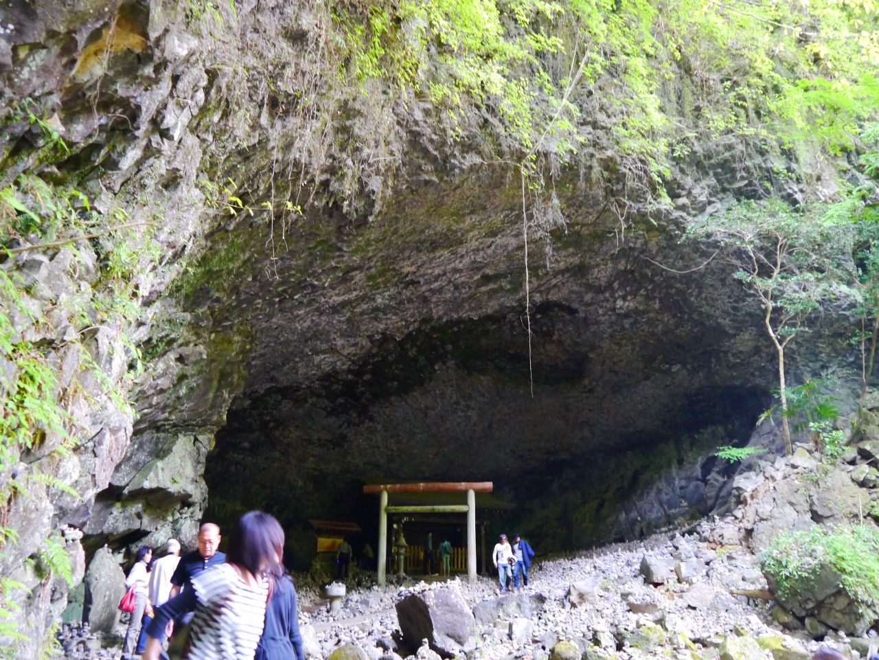 高千穂峡の帰りに行きました。30分程遊歩道をどんどん下っていくと、そこに天照大御神が隠れたと言われているおおきな洞窟があります。たくさんの岩が祀られて?います。何とも厳かな気分になります。傍にはきれいな川が流れています。