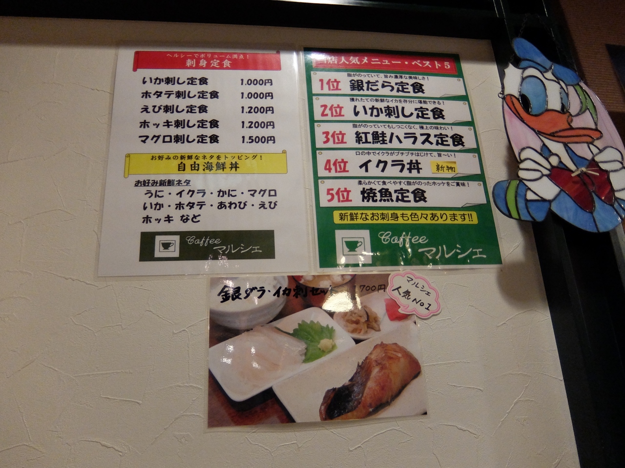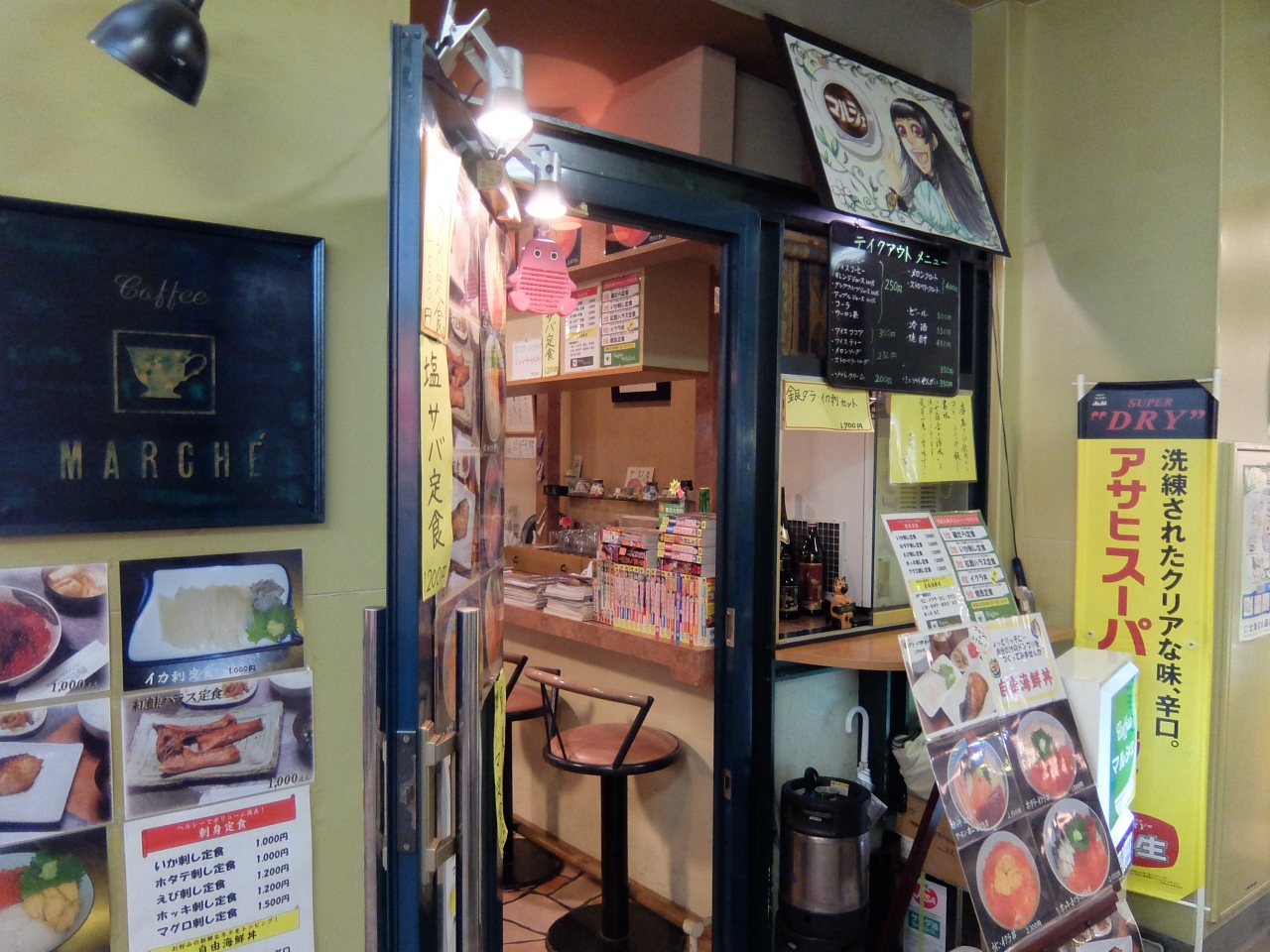 元町ホテルの女将から、だまされたと思って、函館自由市場内のCoffeeマルシェで、小食をしてみたらとの勧めで、訪問。一見喫茶店風であるが、中に入ると、食堂の様相。マスターが親切にいろいろ教えてくれ、定食的なものから、特注は、マスター水から駆け足で、お客さんの要望に則する食材を仕入れてくれる。最高の鮮度で、自由な組み合わせの朝食ができる。我々は、二日にわたり、訪問。気さくなマスターとすっかり顔なじみになりました。朝は7時から17時までとのことですから、朝食、昼食、早夕食などにおすすめです。