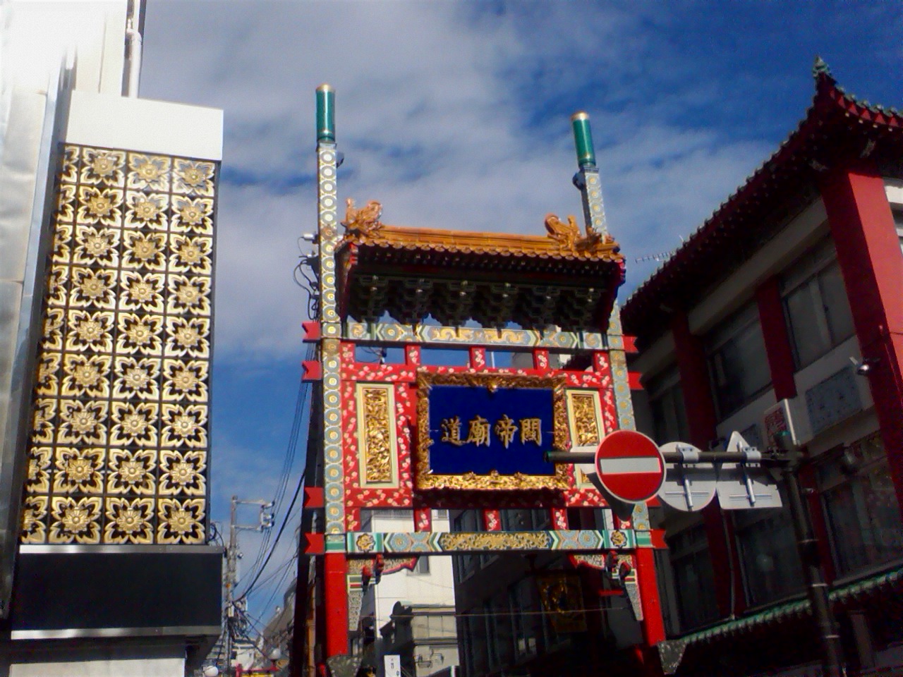 関帝廟通りの石川町駅側の入口にある門で、横浜中華学院と華都飯店の間に立地しています。