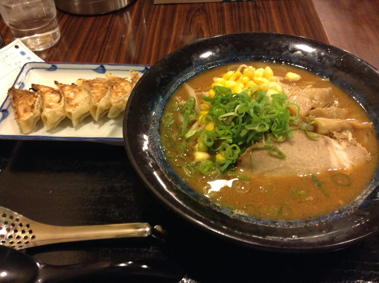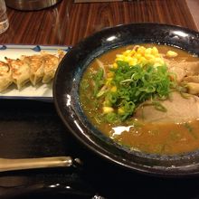 味噌ラーメンは決して不味くはないですが、普通の味、餃子も小振りな普通の博多餃子でした。