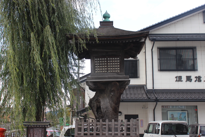 船着場の灯篭です。日本海から上がってくる夜間の船行の灯明台として.段立ち荷上場になっていた幕末までは.川端に蔵屋敷などが並んでいたそうです。とても大きな灯篭に.その当時の様子を偲ばせて、歴史を感じました。