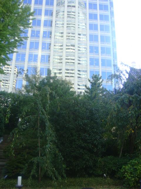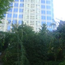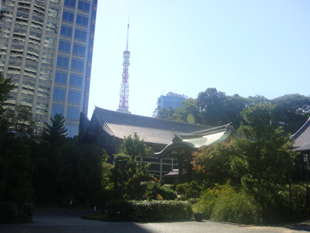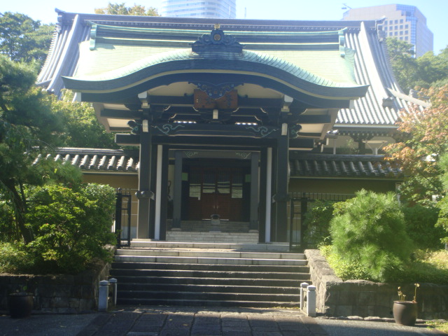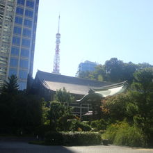 両側を愛宕グリーンヒルズの高層タワーに囲まれたまさに都会の寺院です。山門の左右には四天王像が睨みを利かせており迫力があります。この山門をくぐり左側には「誕生童子と花祭り童子」というかわいらしい像があります。さらに裏庭にはせせらぎがあり、近隣のビジネスマンの癒しの場となっていました。尚青松寺の御朱印はありませんでした。