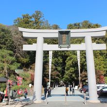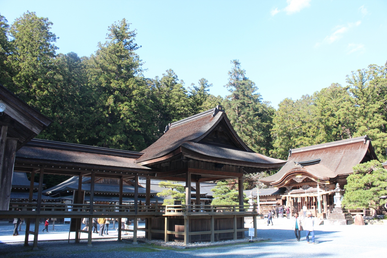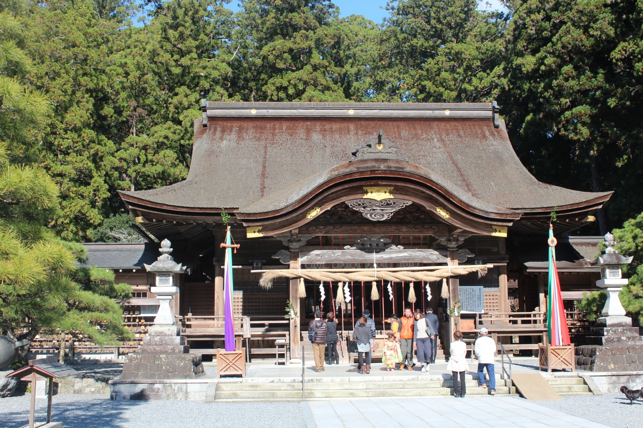 因幡の白ウサギの伝説と縁結びの神、福の神として知られている大黒様をお祭りしたお宮です。1400年あまりの古い歴史があり、杉の巨木との紅葉のマッチングが美しい神社です。今日、11月19日の時点では紅葉のすすみ具合は今一歩というところでした。後十日くらい先がピークかなと思います。大鳥居の前にあるみやげもの店が集まった一角、小國ことまち横丁はかなりにぎわっていました。七五三や初宮参りの人たちもお参りしていましたが、今日は平日なので昨年休日に訪れたときに比べれば人ではだいぶ少なく、ゆっくりとお参り・散策ができました。新東名高速道路が開通し、近くにインターチェンジができて東京方面・名古屋方面からのアクセスは昔に比べて大変便利になりました。