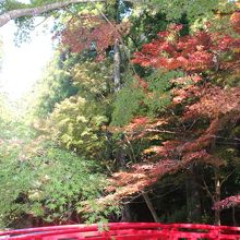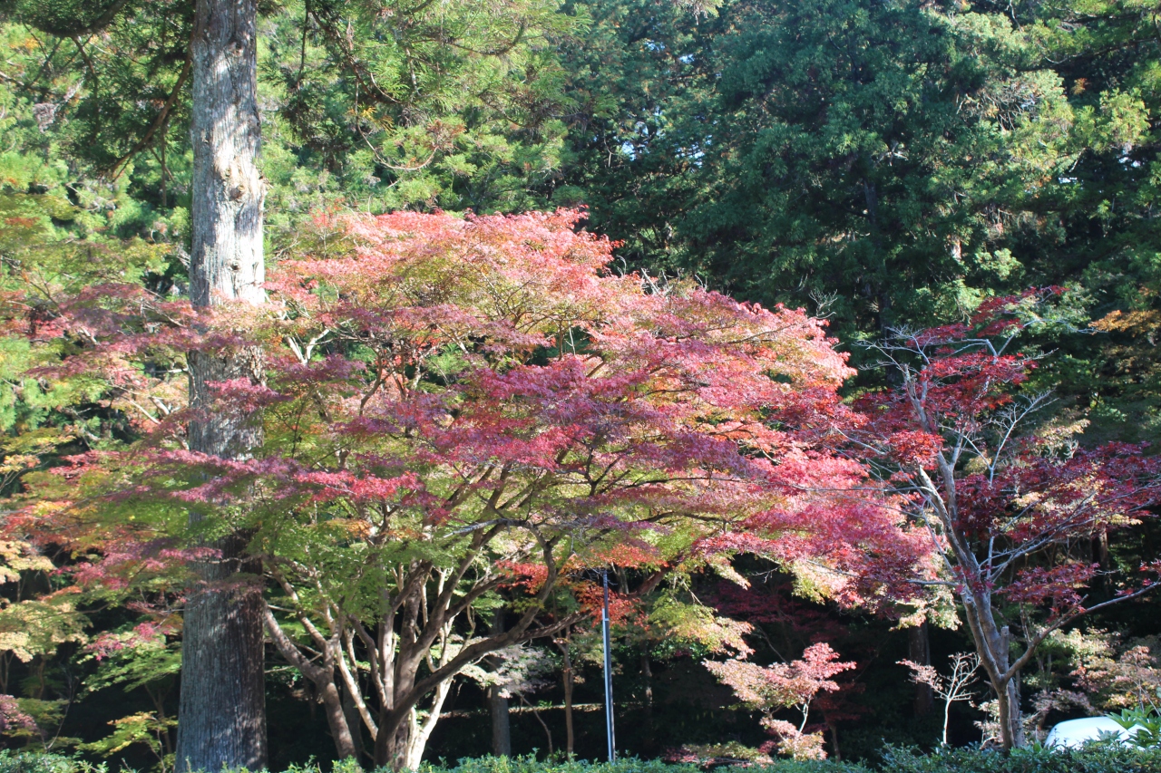 紅葉と杉の巨木がマッチング