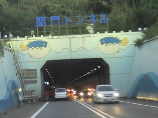 本州の下関市と九州の北九州市門司区の間の関門海峡の下にあり、関門トンネルは二重構造になっていて上は車が走り下が人が歩けます。通行料は軽自動車は100円で普通車は150円。人は通行料は無料で自転車・原付は20円かかります。車で走るとあっという間に通過して結構短かく感じてしまいます。入口にはかわいいフグが描かれています。