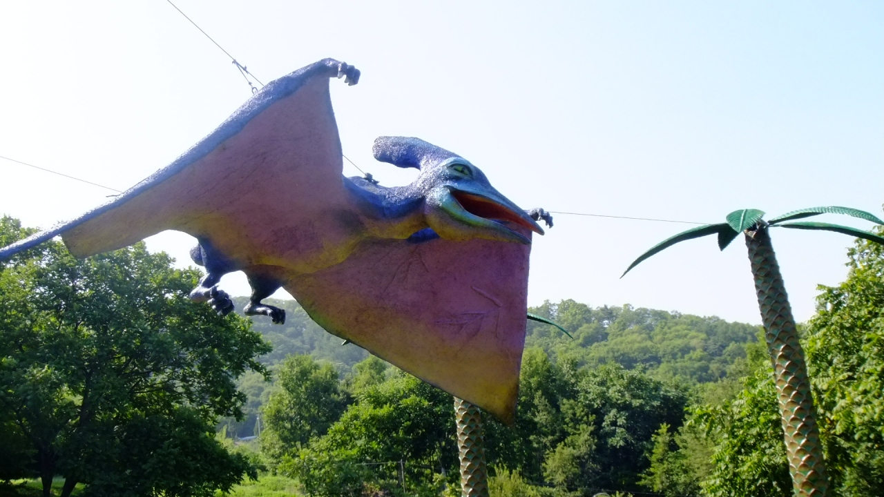 駐車場に車を止めて、山を歩くと30体以上の恐竜たちがいる。どれも大きくりっぱで、滑り台になっていたり、上れるようになっていたり、空を飛んでいたりと工夫されている。子供たちも楽しそうに遊んでいた。昔話にかかわるゾーンもあって、みどころたくさんで楽しかった。
