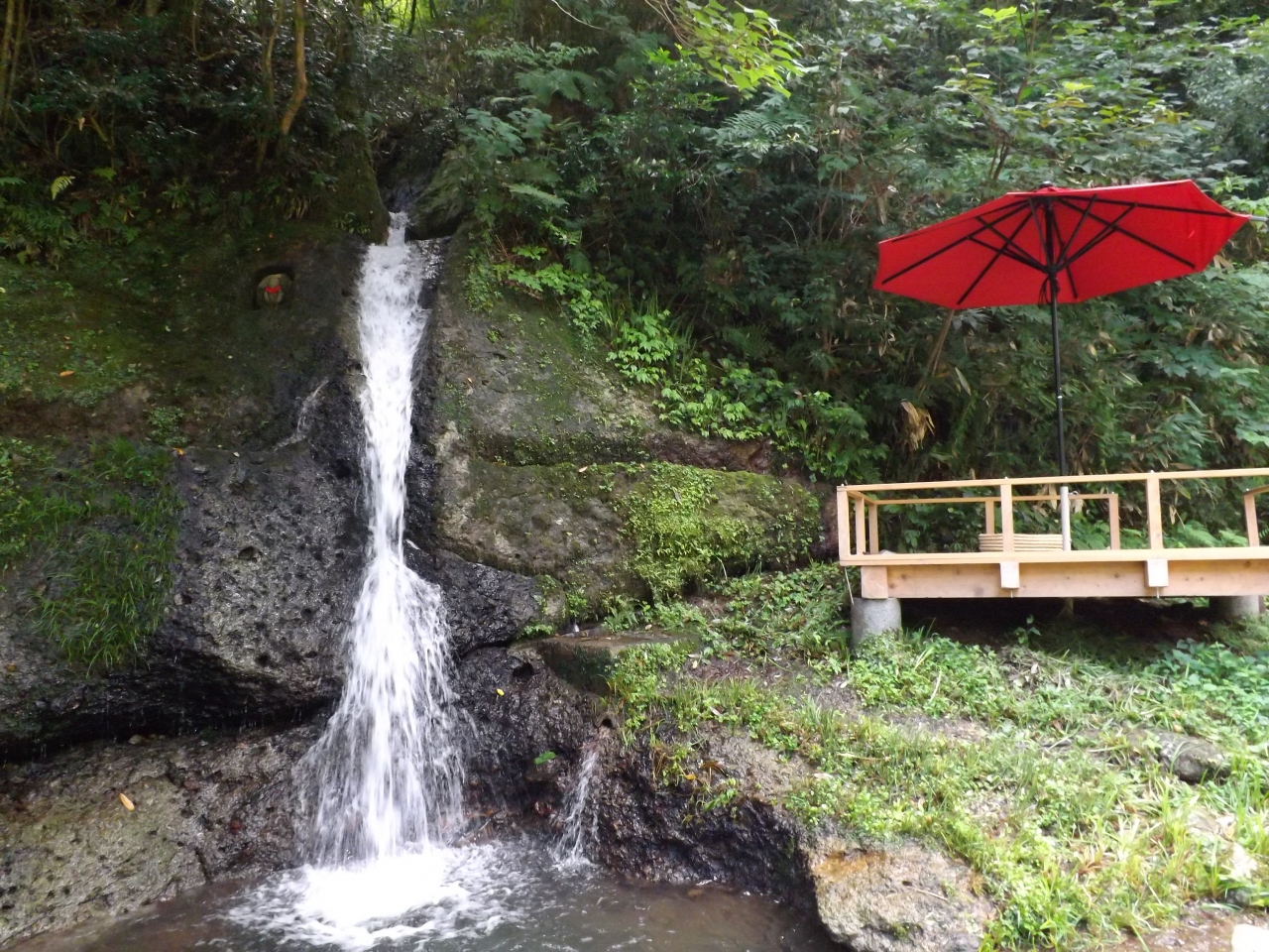 山中温泉に宿泊した理由は、近くに鶴仙峡があるからでした。山中温泉は、松尾芭蕉が愛した所で、鶴仙峡にも足を運んだそうです。遊歩道に入ったところに芭蕉堂が建っていました。このあと、川に沿って遊歩道が続いていて、往復1時間くらいはかかりました。川・岩・橋などがあり、自然の織りなす風景がここにありました。風流な気分をかもしだす場所です。途中に川床があり、赤色の傘が周りの風景と溶け合い、小さな滝とマッチしていて、ここが一番気にいりました。お茶とスイーツも楽しめます。このあと、兵庫県の加古川まで帰りますが、一般道で帰るつもりです。ここからは、遠い、頑張って運転しなくっちゃ。