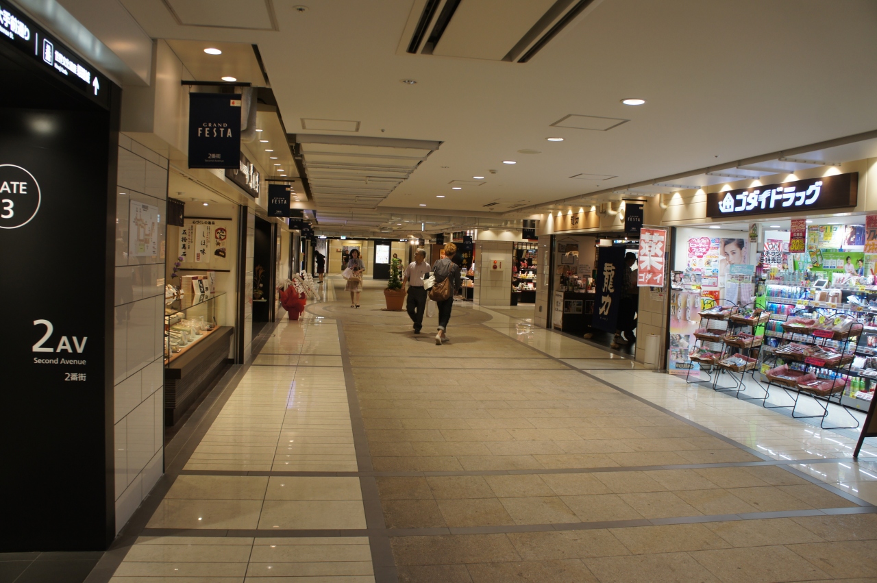GRAND FESTAは、山陽姫路駅からそのまま地下に下りたところ。地下街のショッピングエリアです。で、通路に面して、播磨地方の和菓子屋さんが三軒並んでいました。姫路のお店に、赤穂の有名店もあって、その選りすぐり感が何気にいいなあと思いました。