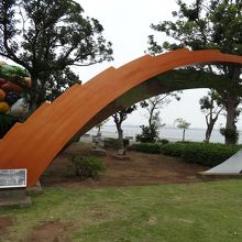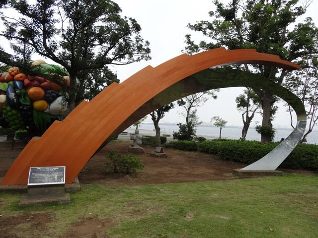 公園はとても広いのですが、どちらかというと横浜駅に近い方にあります。木などが植えてあるのでわかりにくいですが、フルーツツリーの近くで、特徴的なオブジェなので目立ちます。
