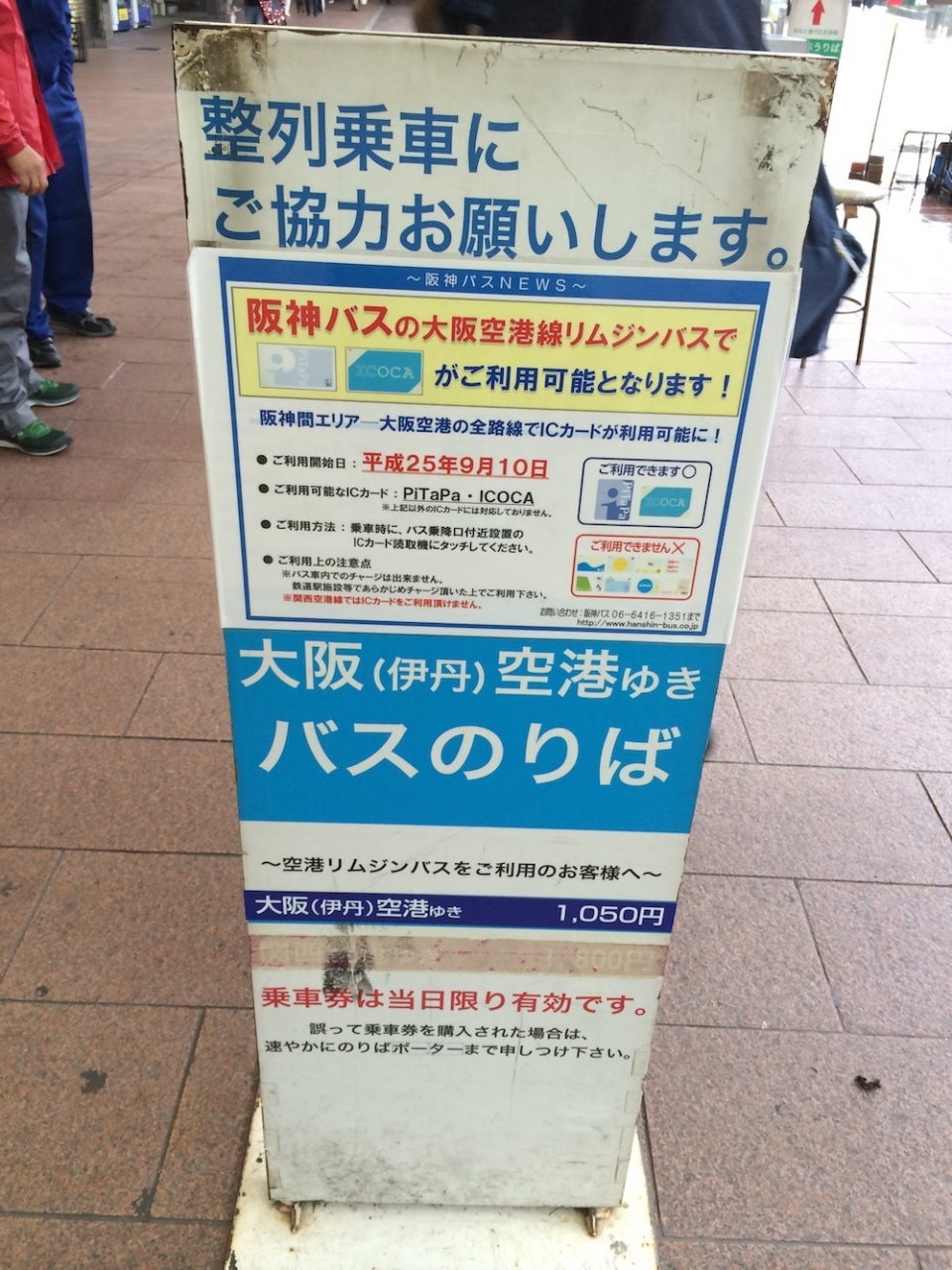 伊丹空港も三宮からはちょっと不便な場所です。電車ではいずれも乗り換えが必要だからです。リムジンバスは値段こそちょっとしますが、本数も多く後続便も出る(繁忙期)ので、安心して乗ることが出来ます。注意点は三宮の場合降り口は三宮のそごうの前ですが、乗るのは三ノ宮駅から元町に向かっていった方にある場所で若干離れていることですね。