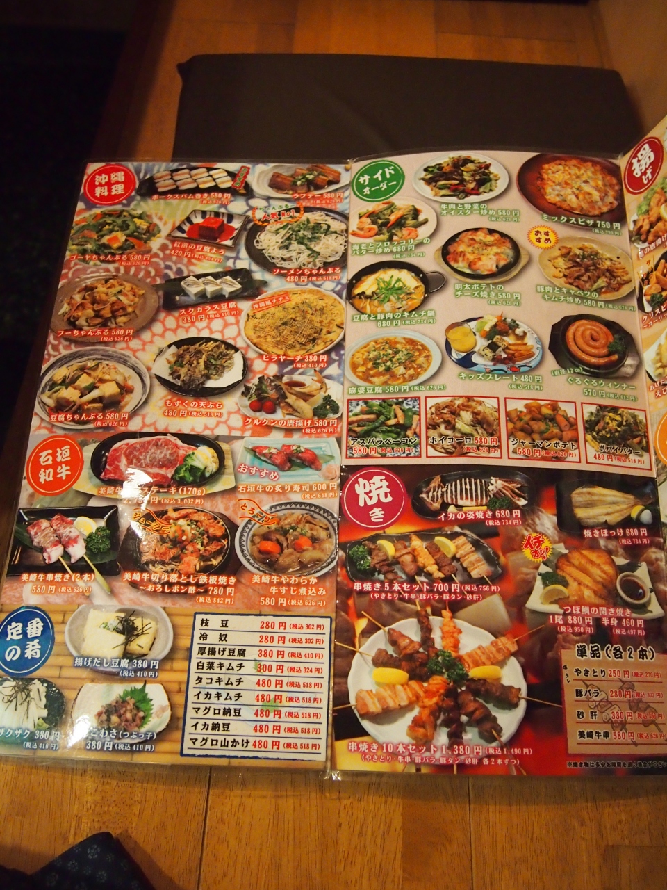 普通の居酒屋さんでした。その為観光客らしき人は少なく、周りは地元のお父さんらしき方ばかりで、石垣島の訛りを聞きながら飲んだのである意味、石垣島に来たんだという実感が湧いた店でした。入店から45分間オリオンの麦職人が98円だったので、ガンガン飲みました。