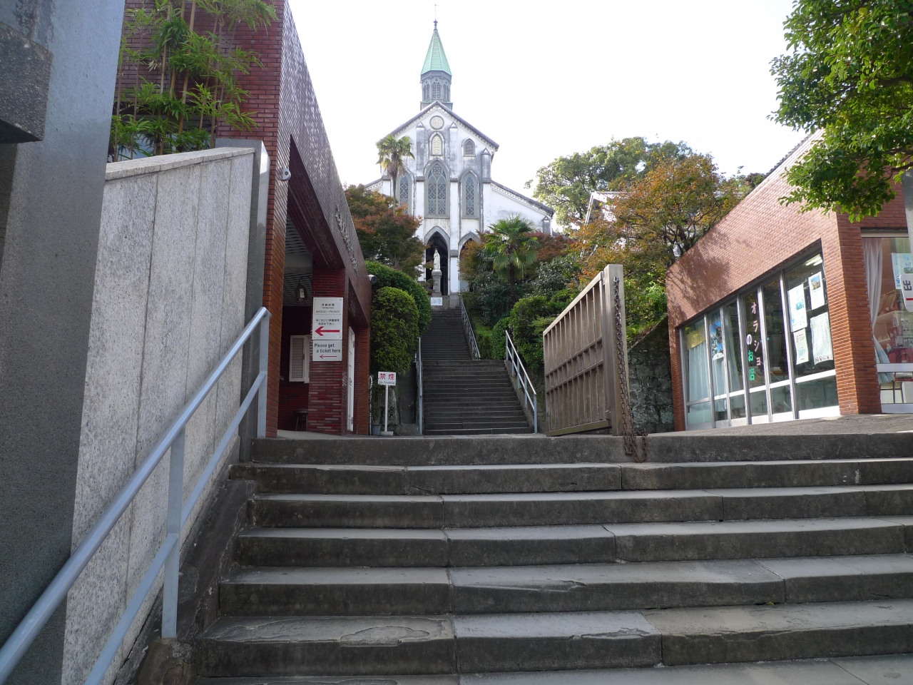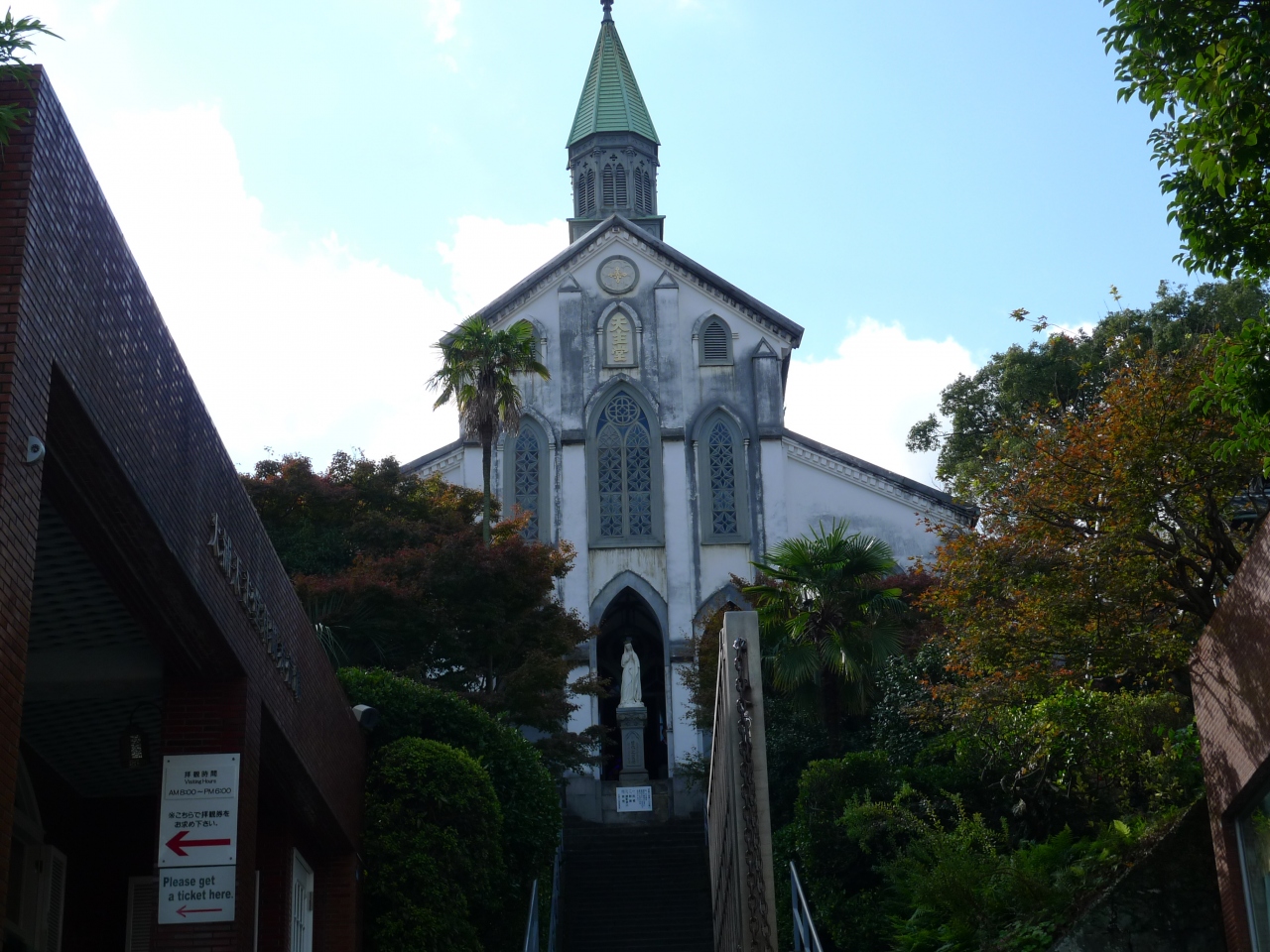 さすが長崎でも有名な教会であり、グラバー園の横の為人の多さは天下逸品でしょう。建物の大きさや正面の雰囲気は十分な貫禄があります。入場料が300円との事で正面から拝見するだけとしました。説明によるとこの建物が木造建築だとか?? すごいですね。
