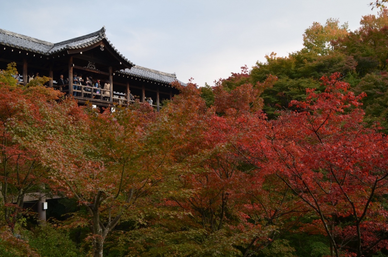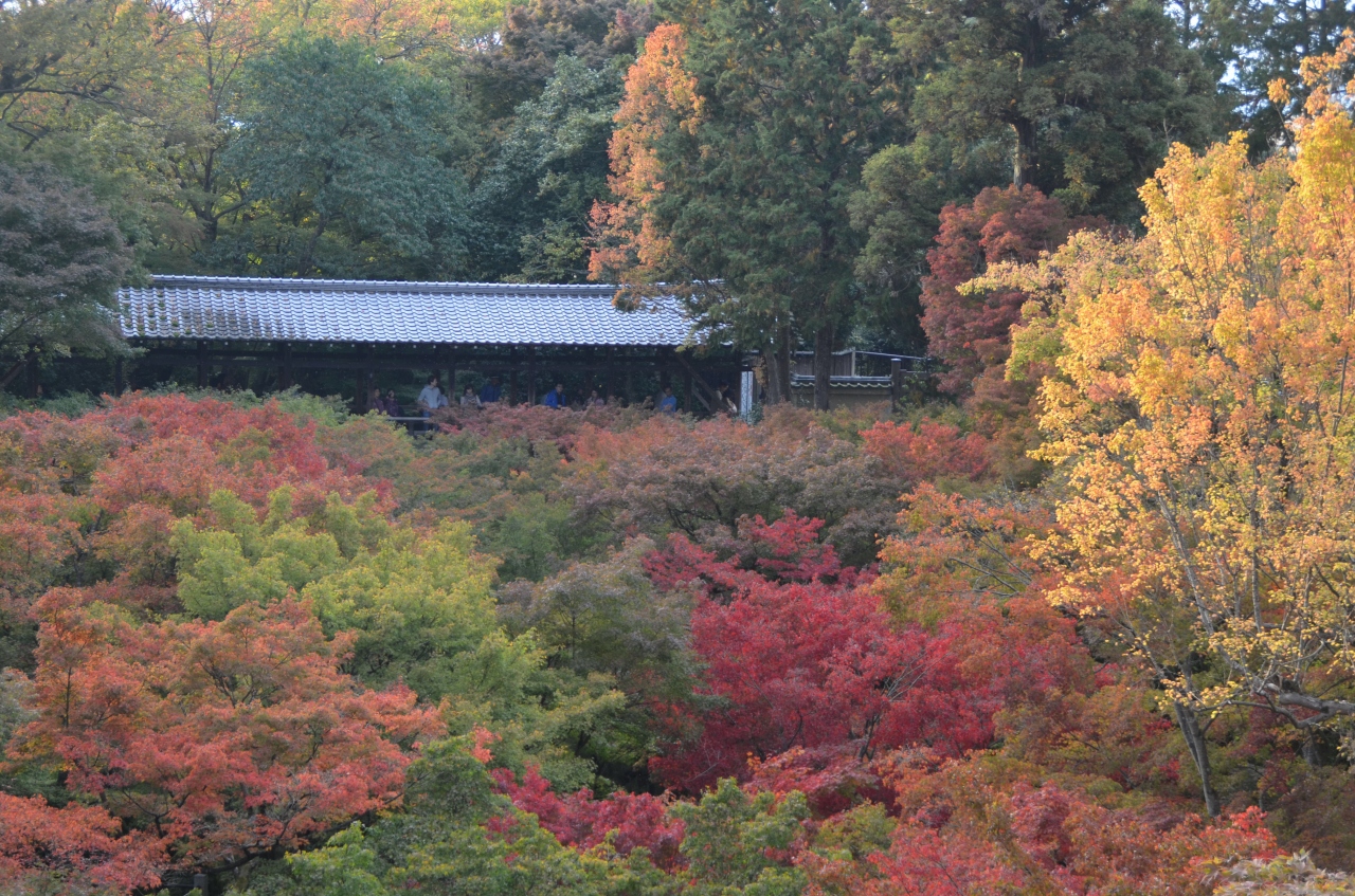 京都の紅葉のどこがベストか、東福寺、永観堂、南禅寺、三千院、北野天満宮、嵐山、建仁寺など枚挙にいとまがない。その中でも京都駅から比較的近く、広大なエリアと紅葉する木の本数などから、東福寺を筆頭にあげる方は少なくないだろう。この日の紅葉は写真で見ていただけるように、桜で言えば五分から六分咲きと言ったところか。