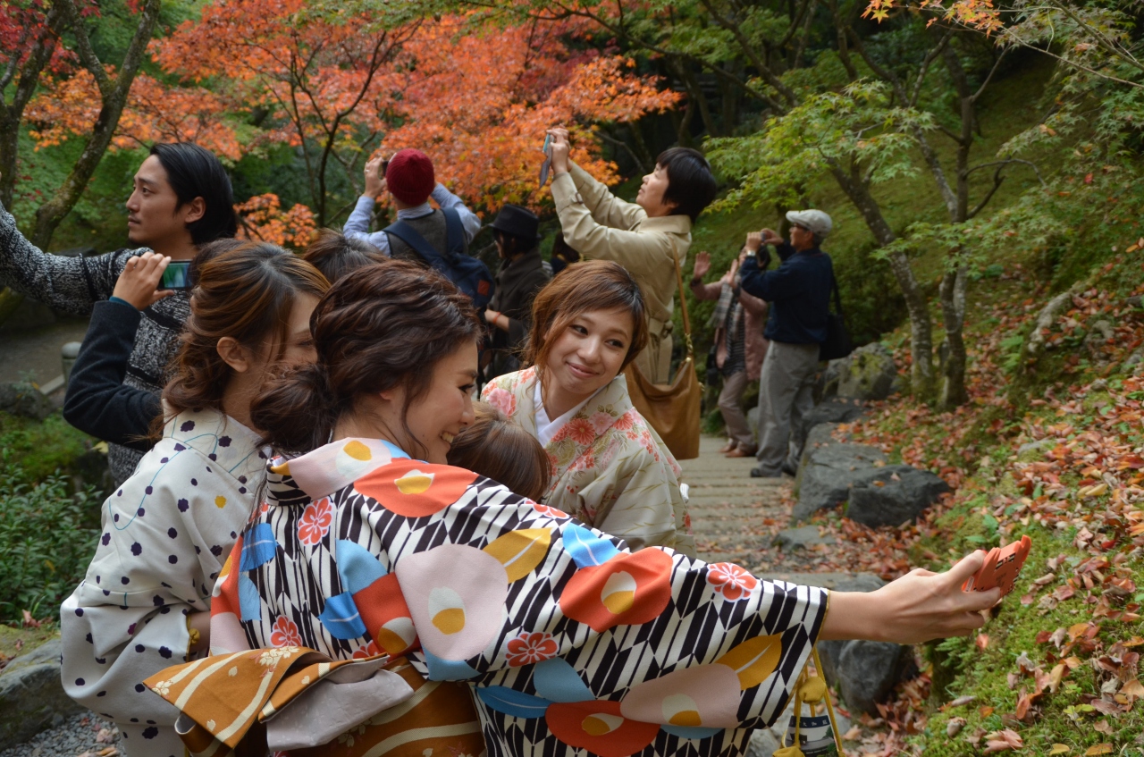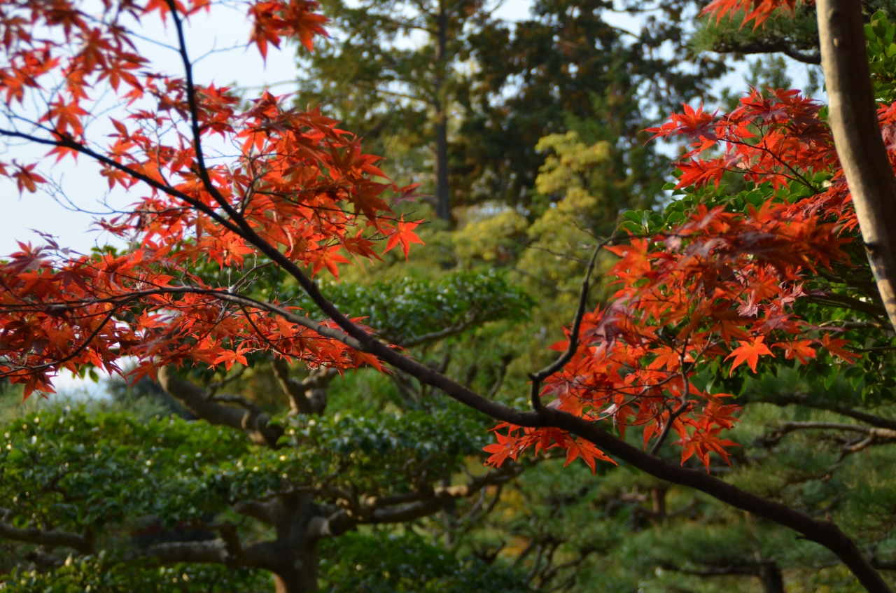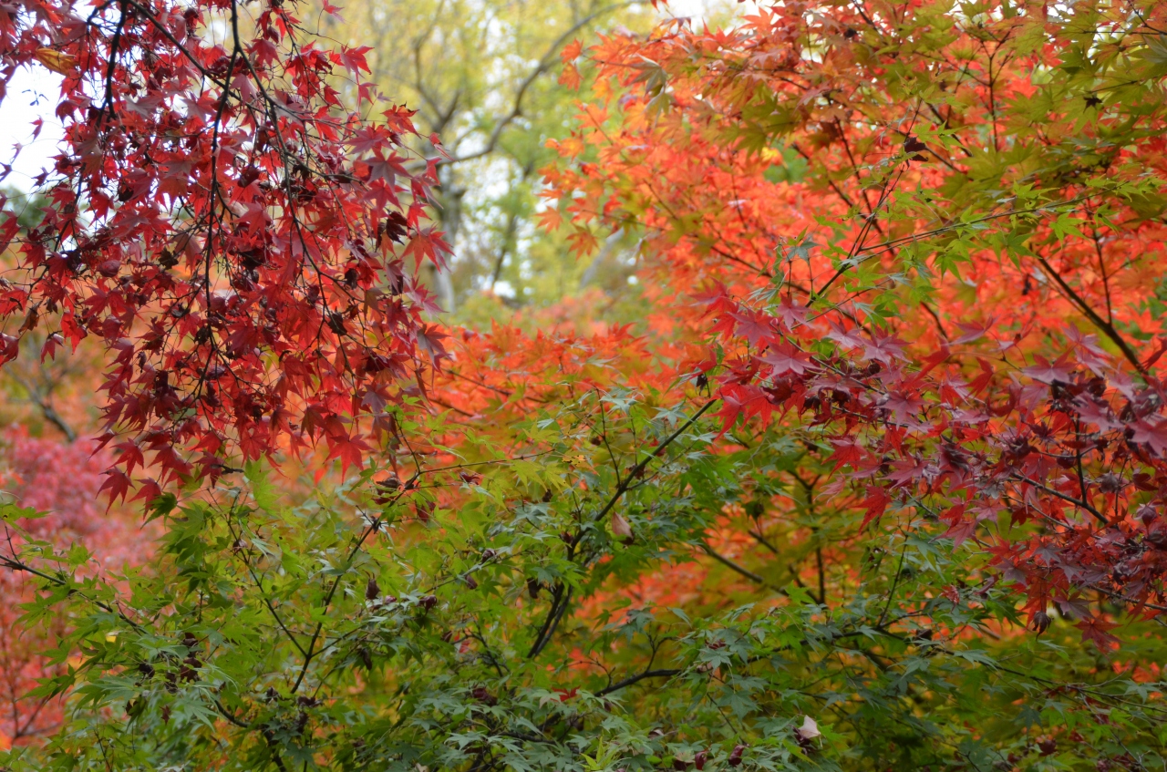 境内には宋から伝わった「通天モミジ」と呼ばれる三葉楓(葉先が3つにわかれている)など楓の木が多く植えられていて、見渡す限り、文字通り燃えるような紅葉の景色が見られる。しかし、もとはこの辺りは桜の木が植わっていたが、「後世に遊興の場になる」という理由で伐採され、楓の木が植えられたというから驚きだ。
